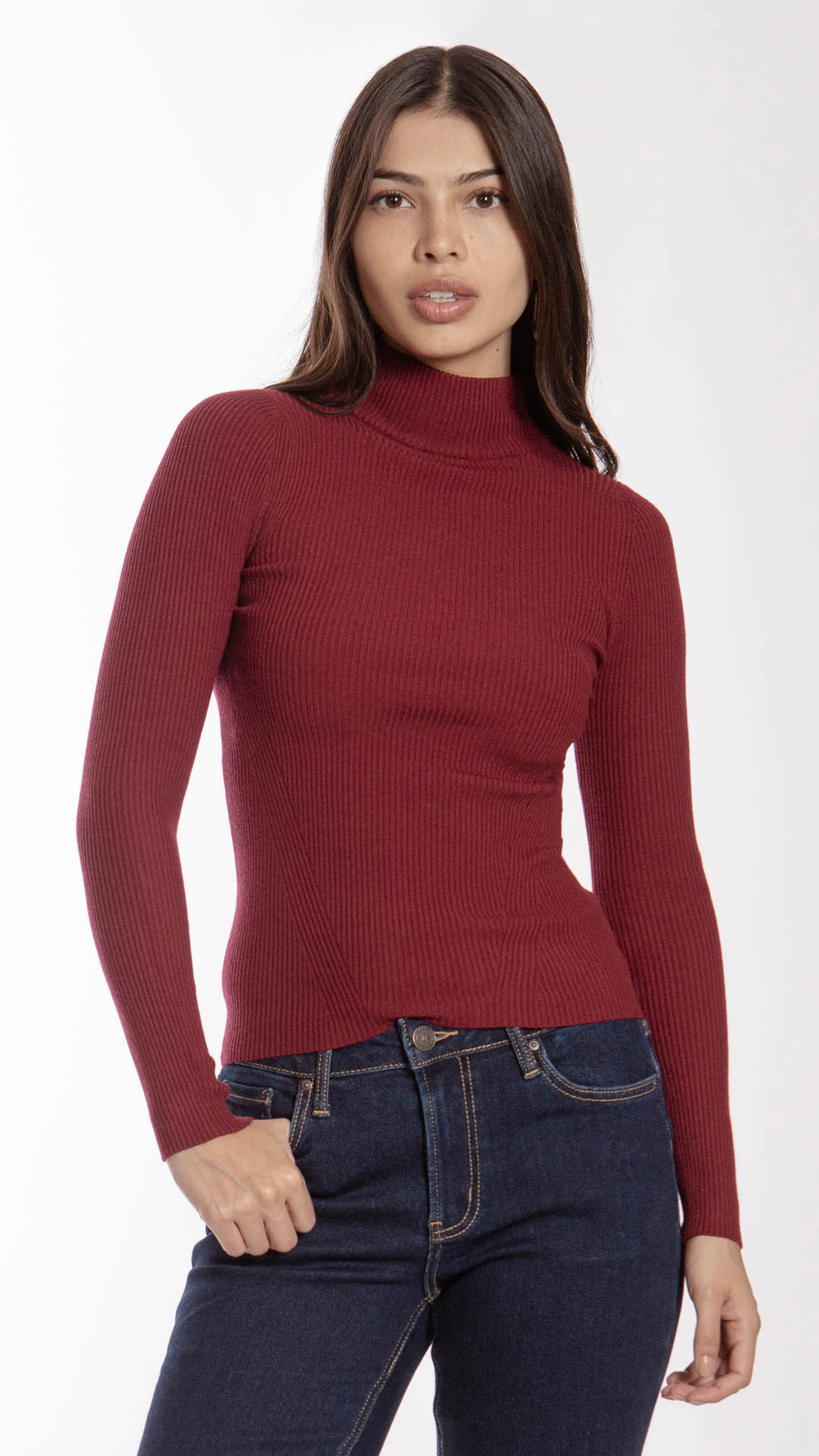 Blusa tejida de manga larga acanalada con cuello alto para mujer B Basic BB0247 en color blanco, negro, beige, café y tinto