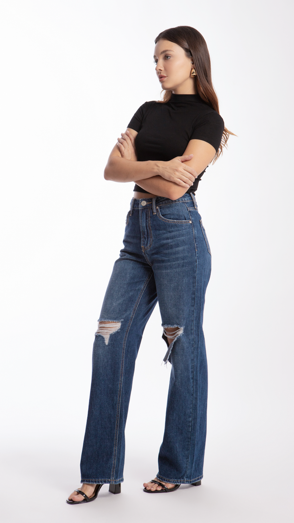 Pantalón wide leg de mezclilla para mujer Balam BL6447 en color azul medio![]()