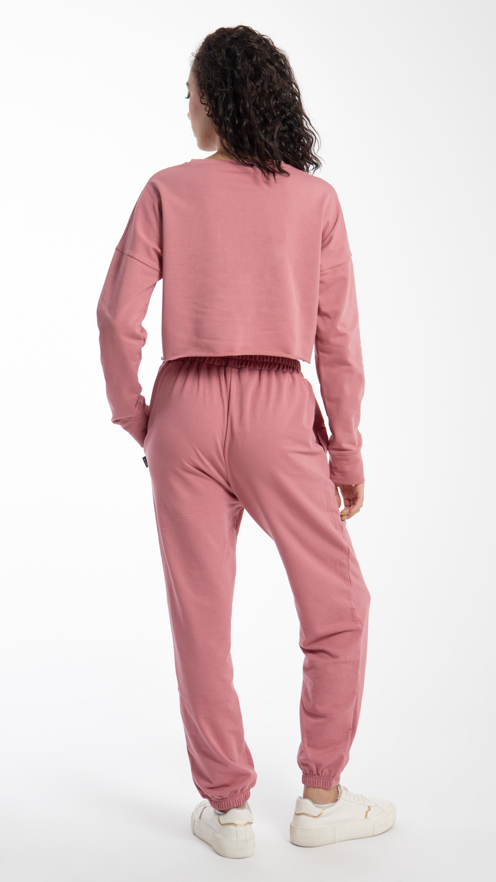 Set de pants y sudadera crop top para mujer B Basic BB0040 en color negro, rosa y menta