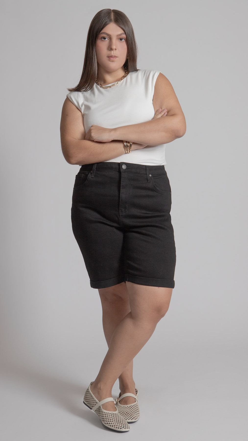 Bermuda con dobladillo marcado en la bastilla curvy Balam BLX7403 en color negro