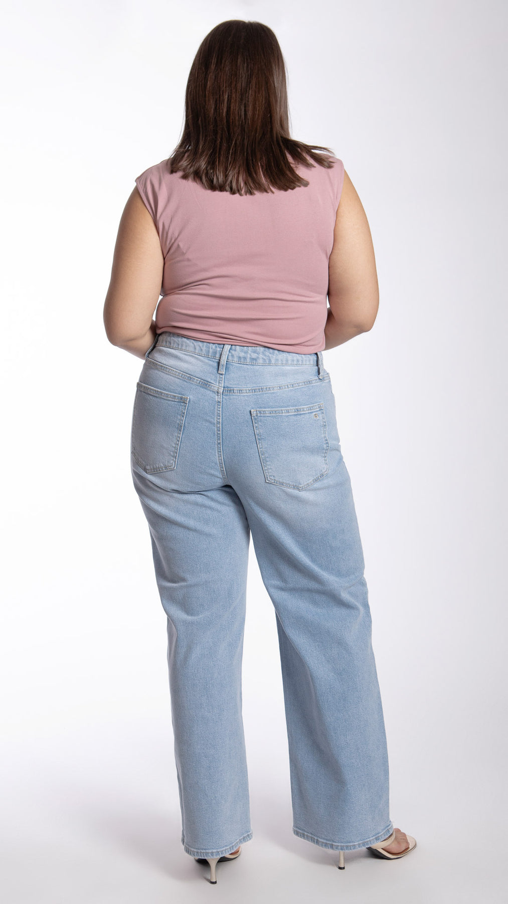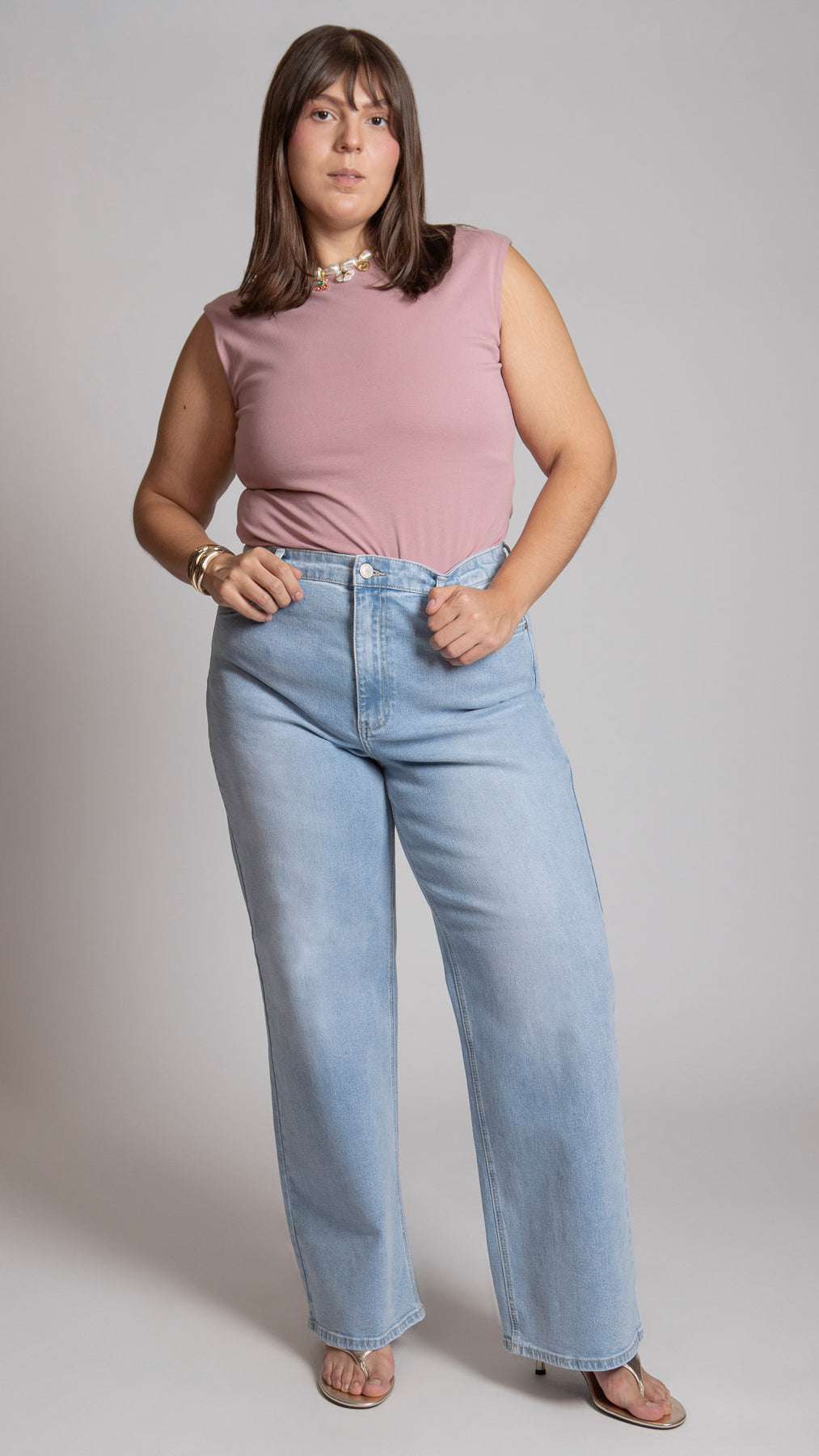 Pantalón wide leg de mezclilla básico liso curvy Balam BLX7454 con corte amplio y tiro alto que brindan comodidad y estilo en color azul oscuro y super oscuro