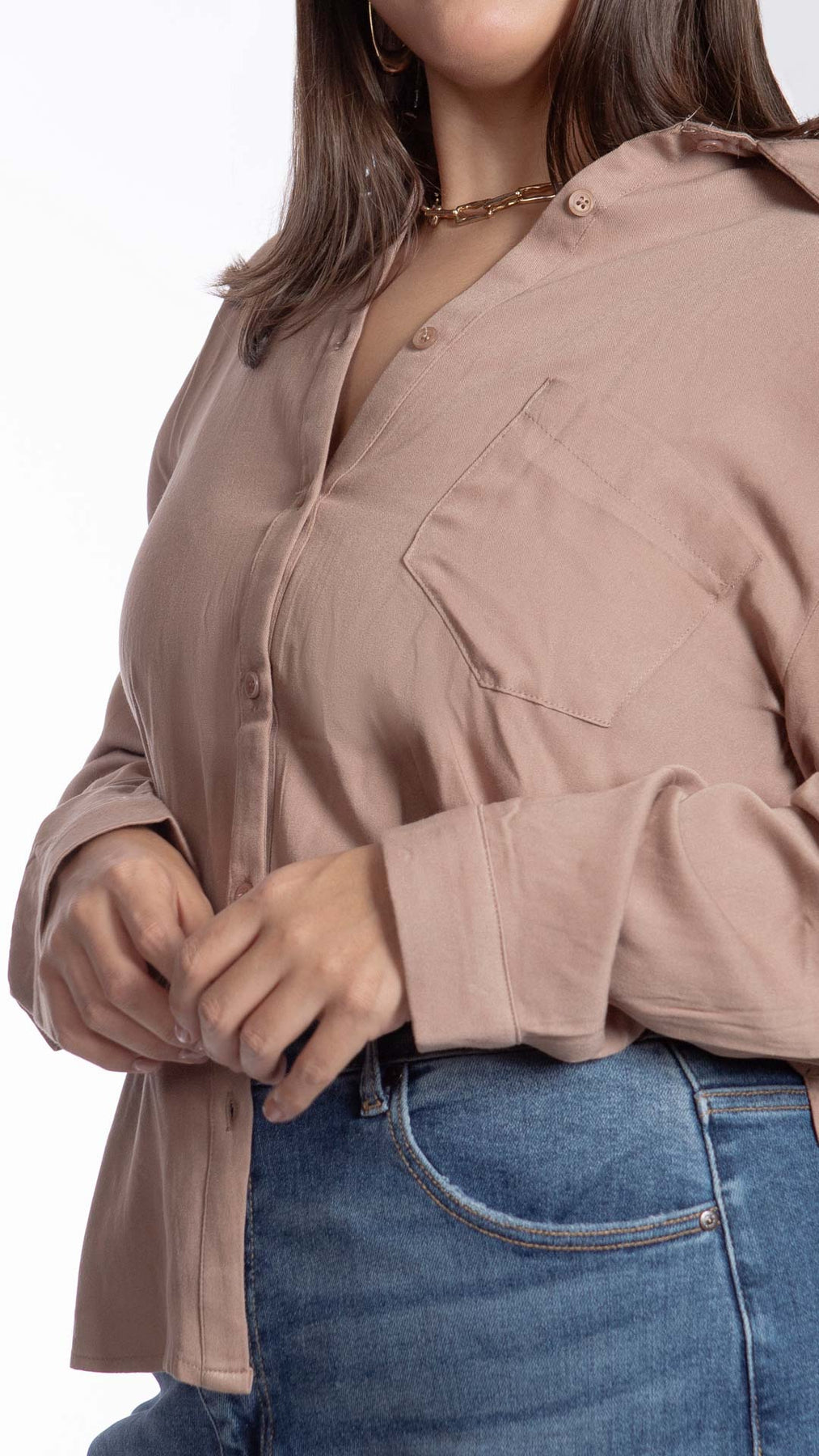Camisa  de manga larga curvy B Basic BB0149 con botones delanteros en diseño clásico y color blanco, negro, beige y azul. Confeccionada en tejido suave y fluido que aporta comodidad y estilo, es perfecta para looks casuales o semiformal. Combínala con jeans o pantalones para un outfit versátil y elegante.