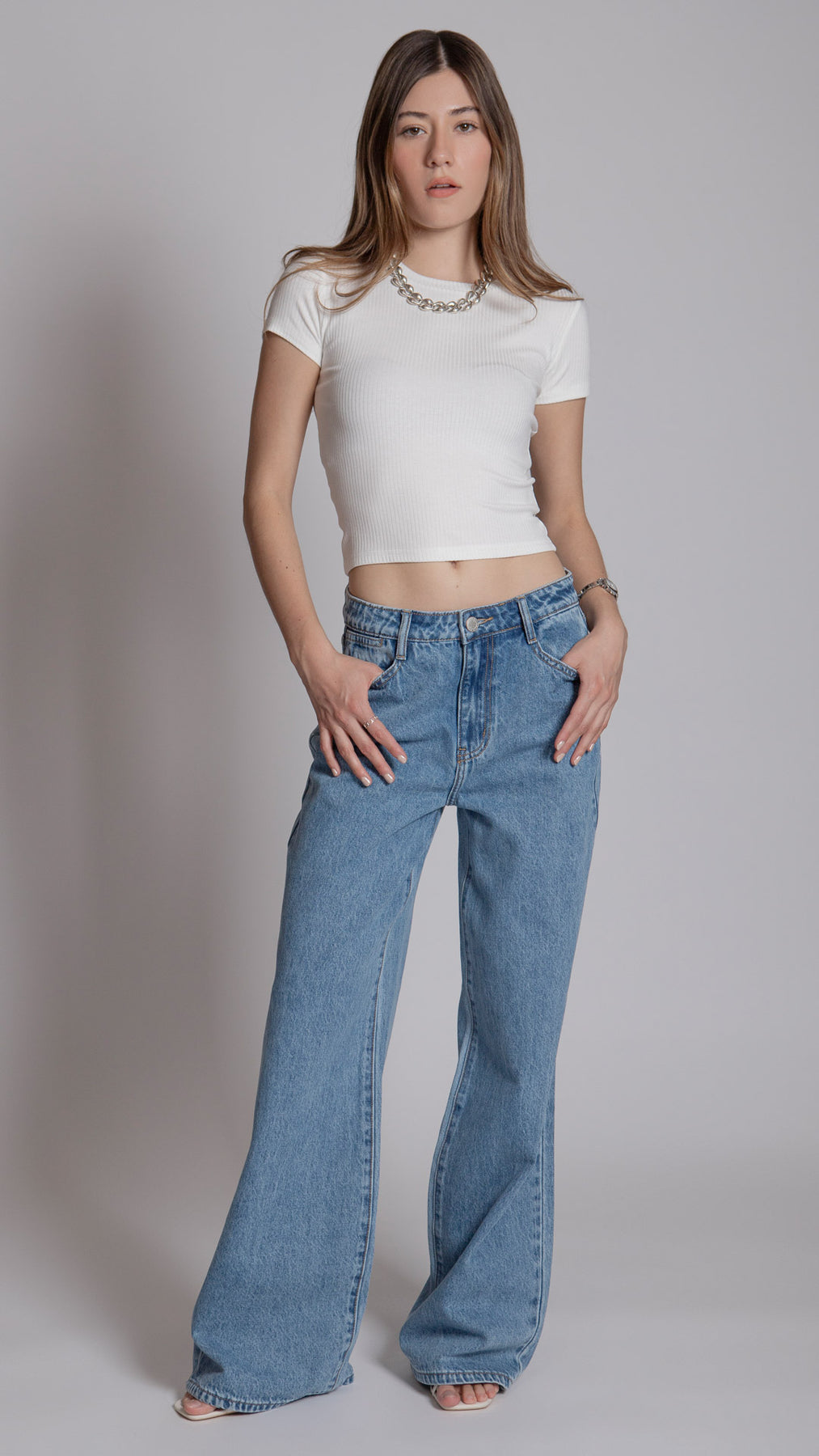 Pantalón vintage loose liso para mujer Balam BL7532 en color azul medio