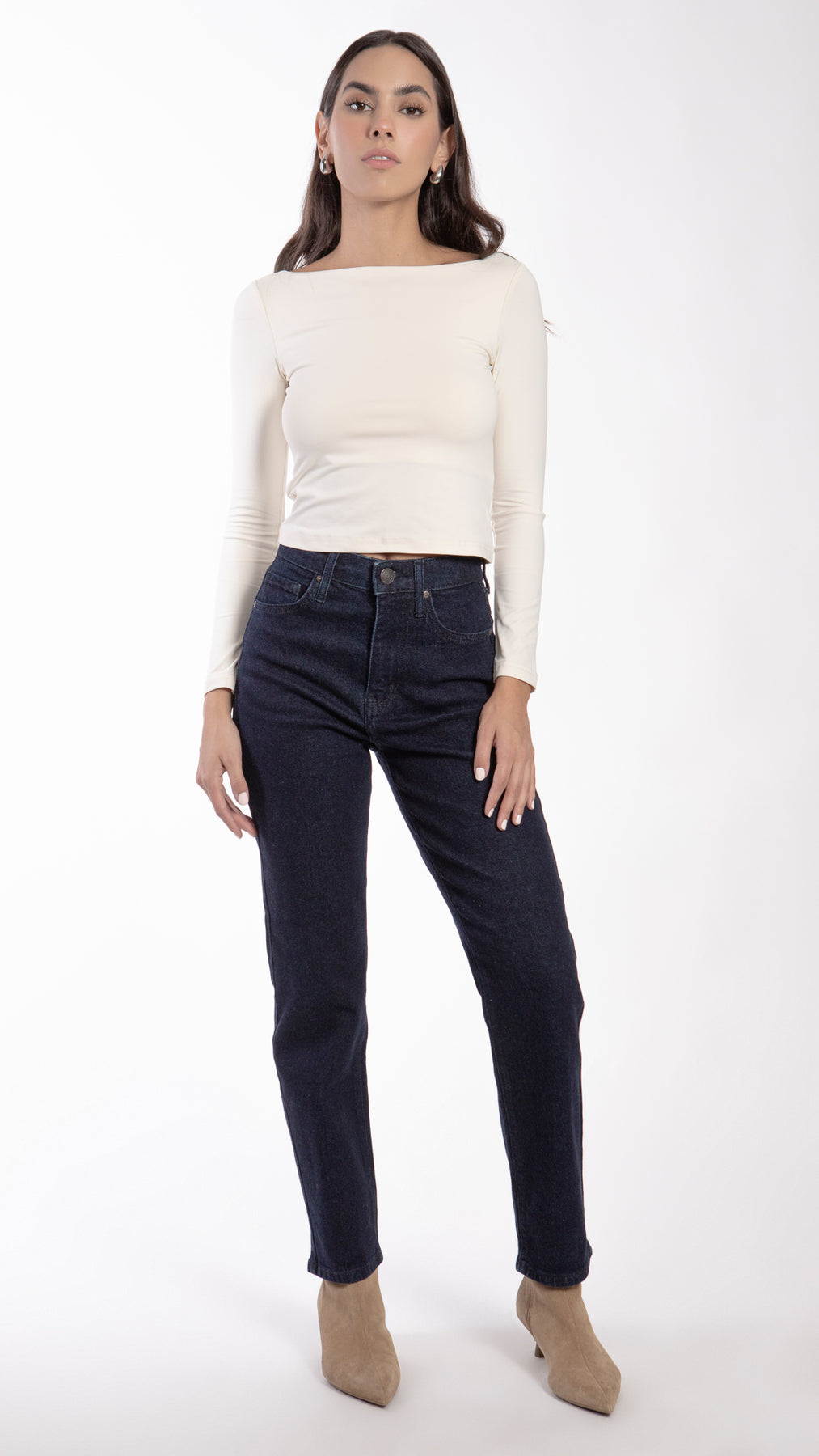 Pantalón straight de mezclilla liso para mujer Balam BL7277, su corte clásico combina con todo en color azul índigo.