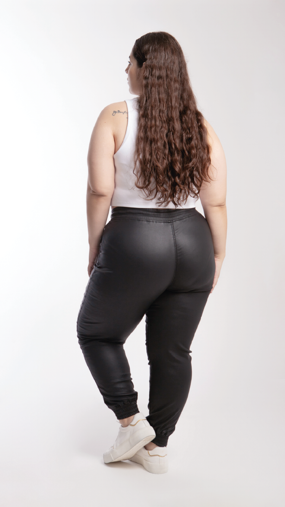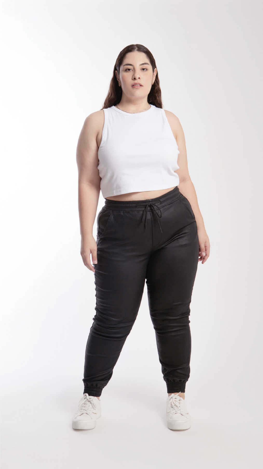 Pantalón jogger de vinipiel curvy Balam BLX6433 estilo relajado y cómodo en color negro