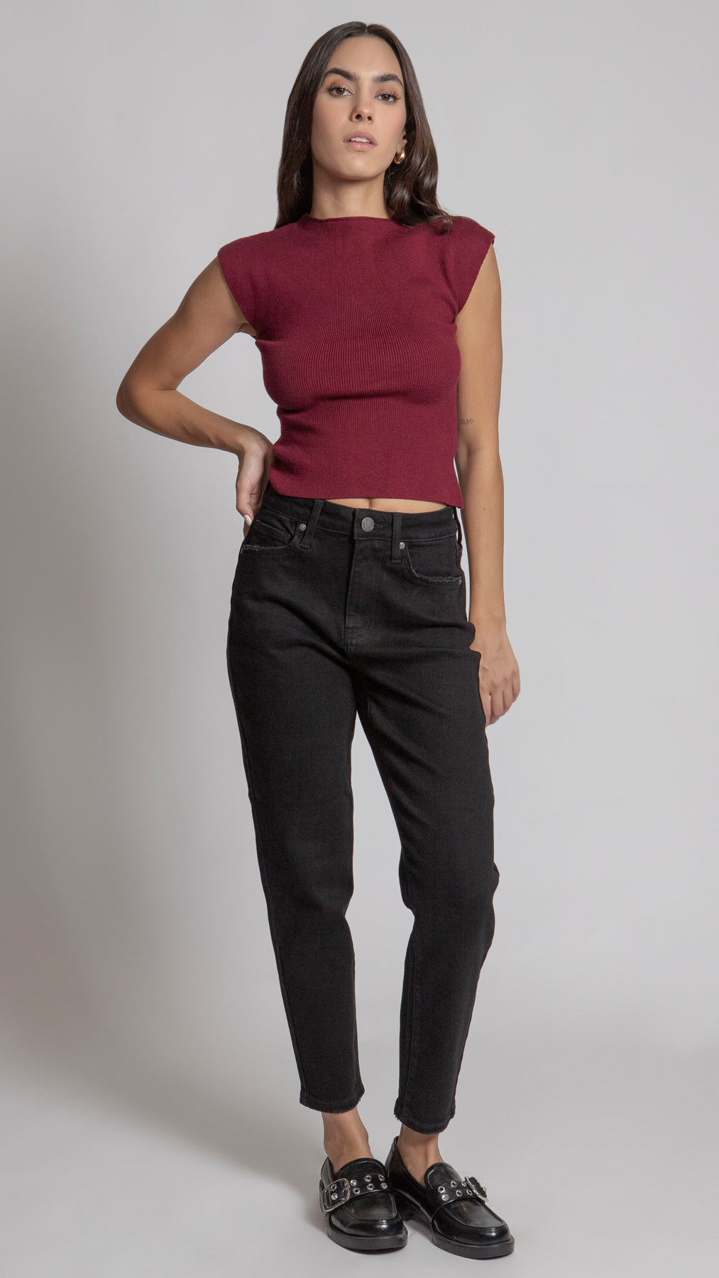 Su corte relajado y alto aporta comodidad y estilo urbano. Confeccionado con tela stretch que se adapta al cuerpo.